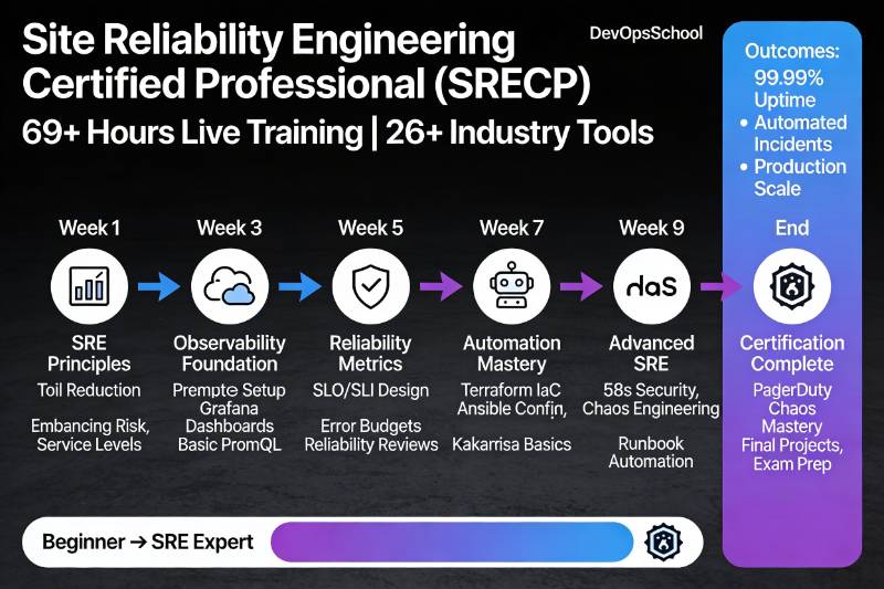 The Site Reliability Engineering Certified Professional (SRECP) certification is a valuable credential that can significantly enhance your career prospects in SRE and DevOps. By mastering the principles of system reliability, automation, and incident management, you’ll be well-equipped to handle large-scale systems and improve their performance and uptime. Follow this guide to prepare effectively for the certification, and take the next step in becoming an expert in site reliability engineering.